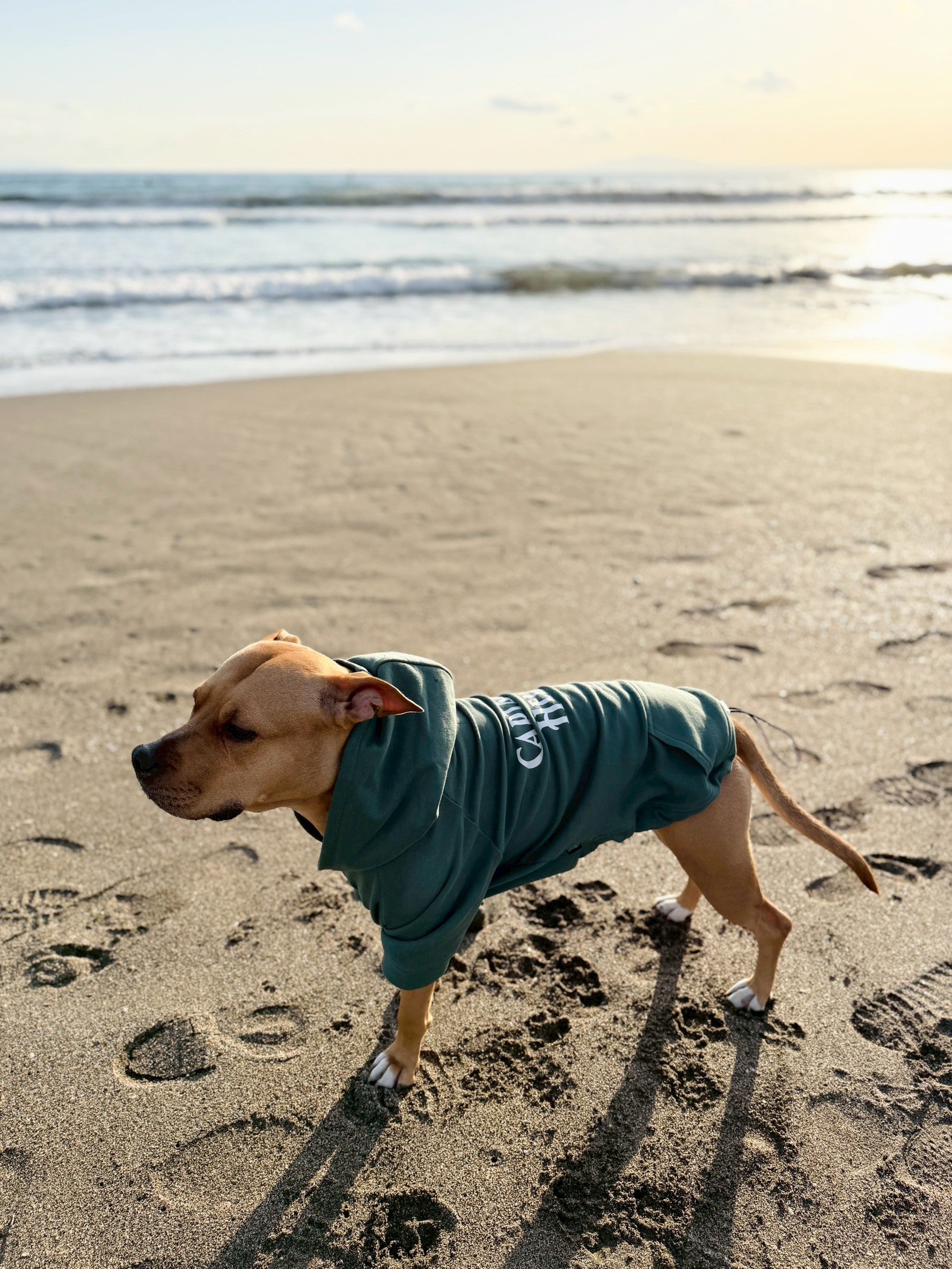 ・フード後ろに切れ込みを設け、ハーネス等のリードが付けられる仕様になっています