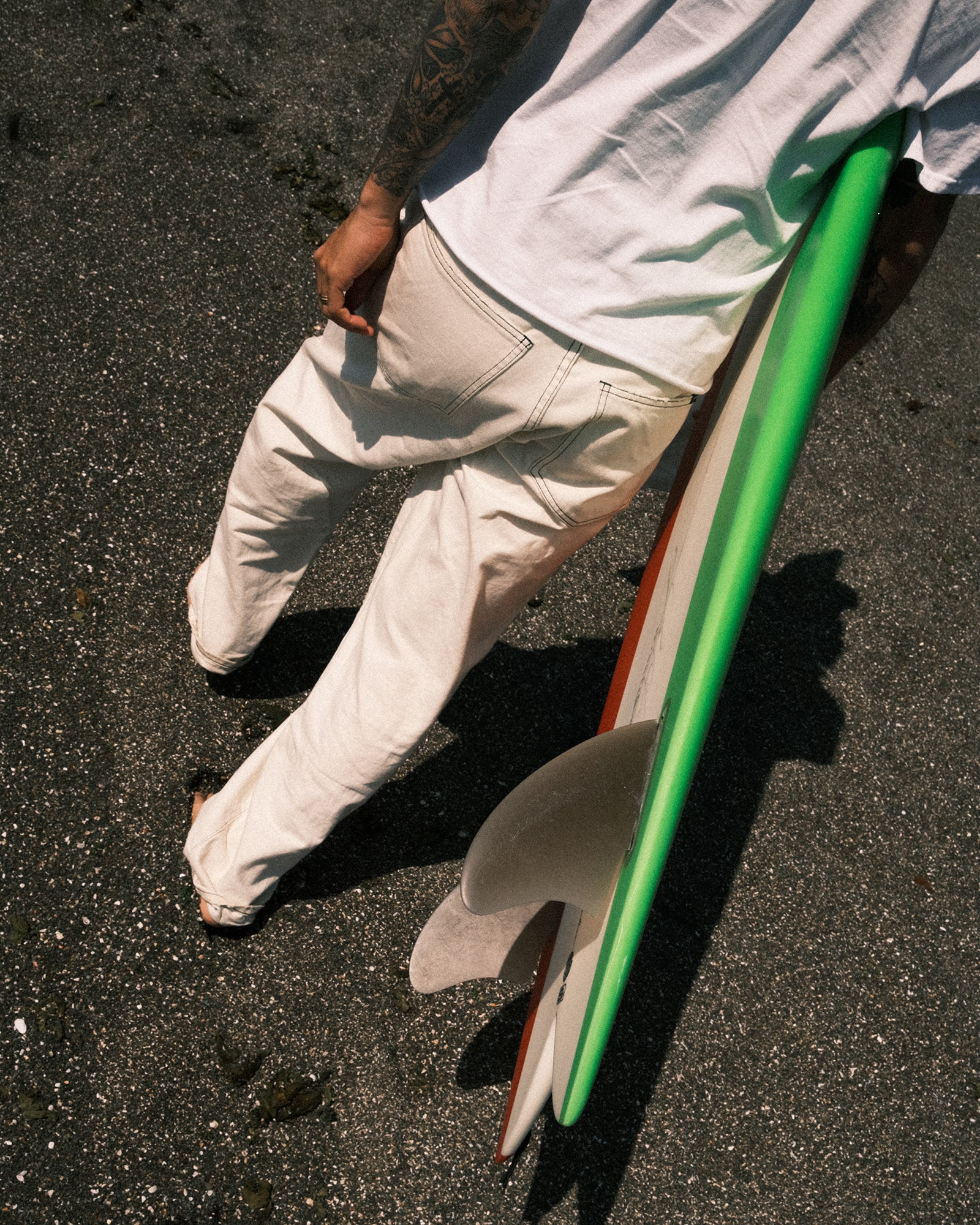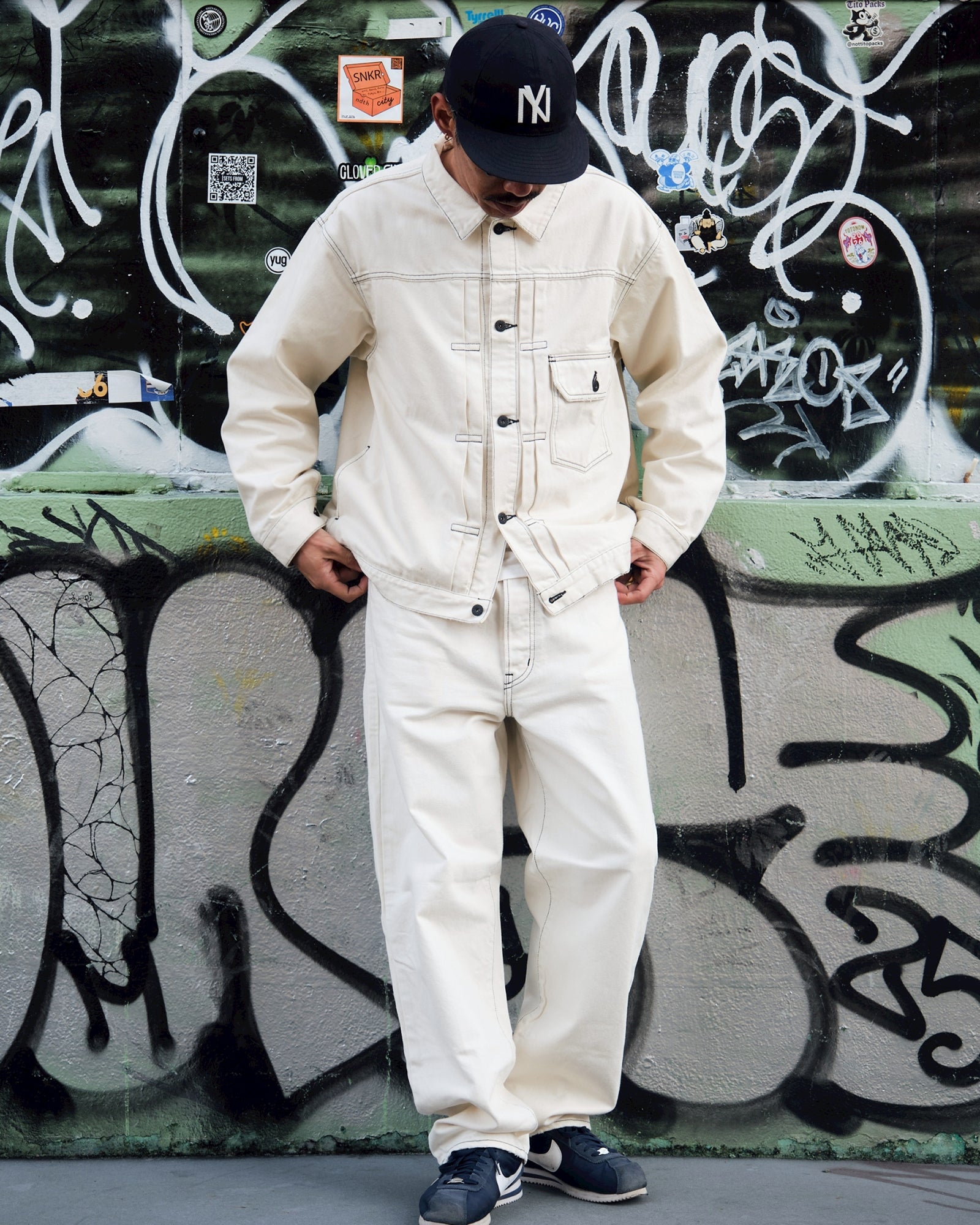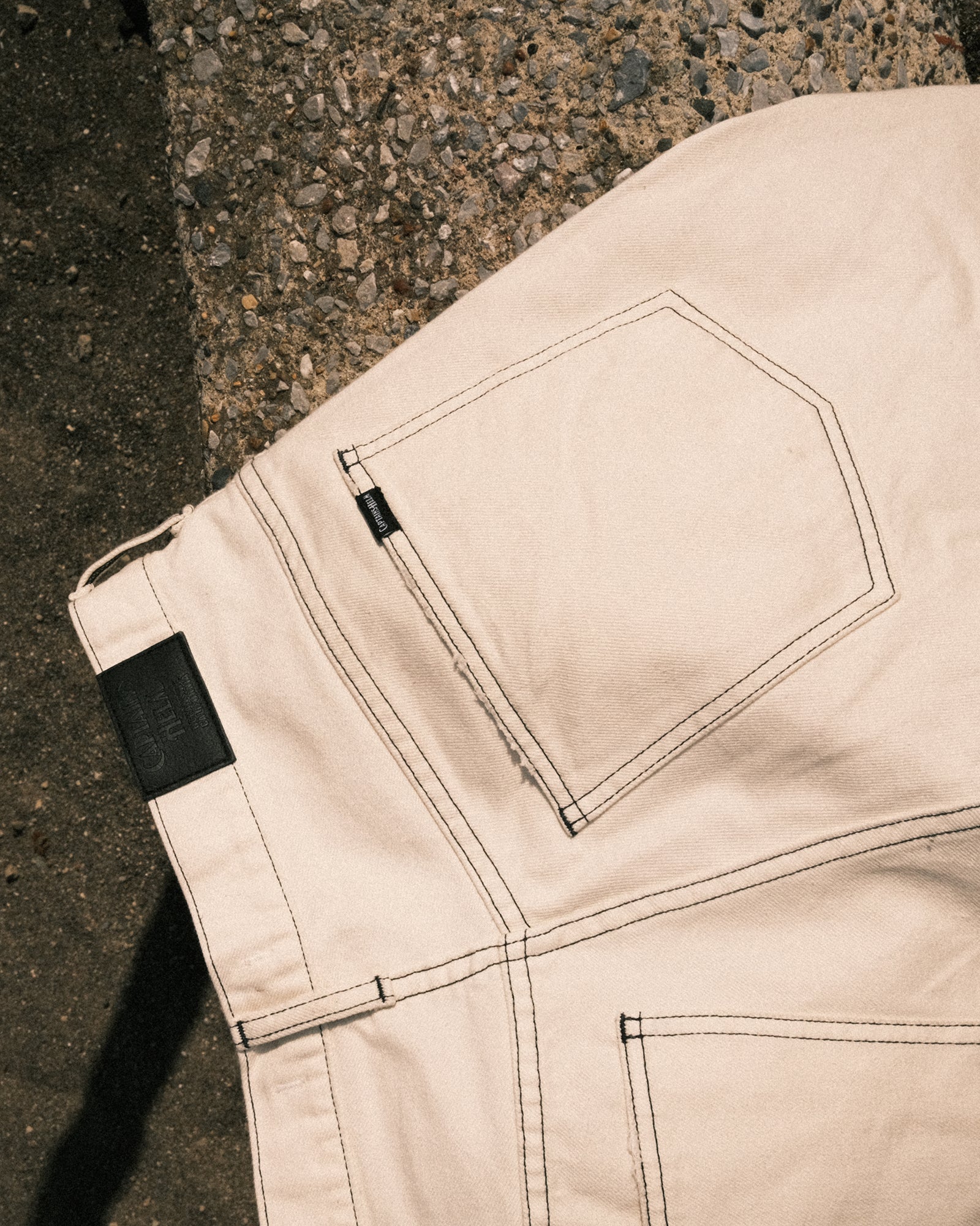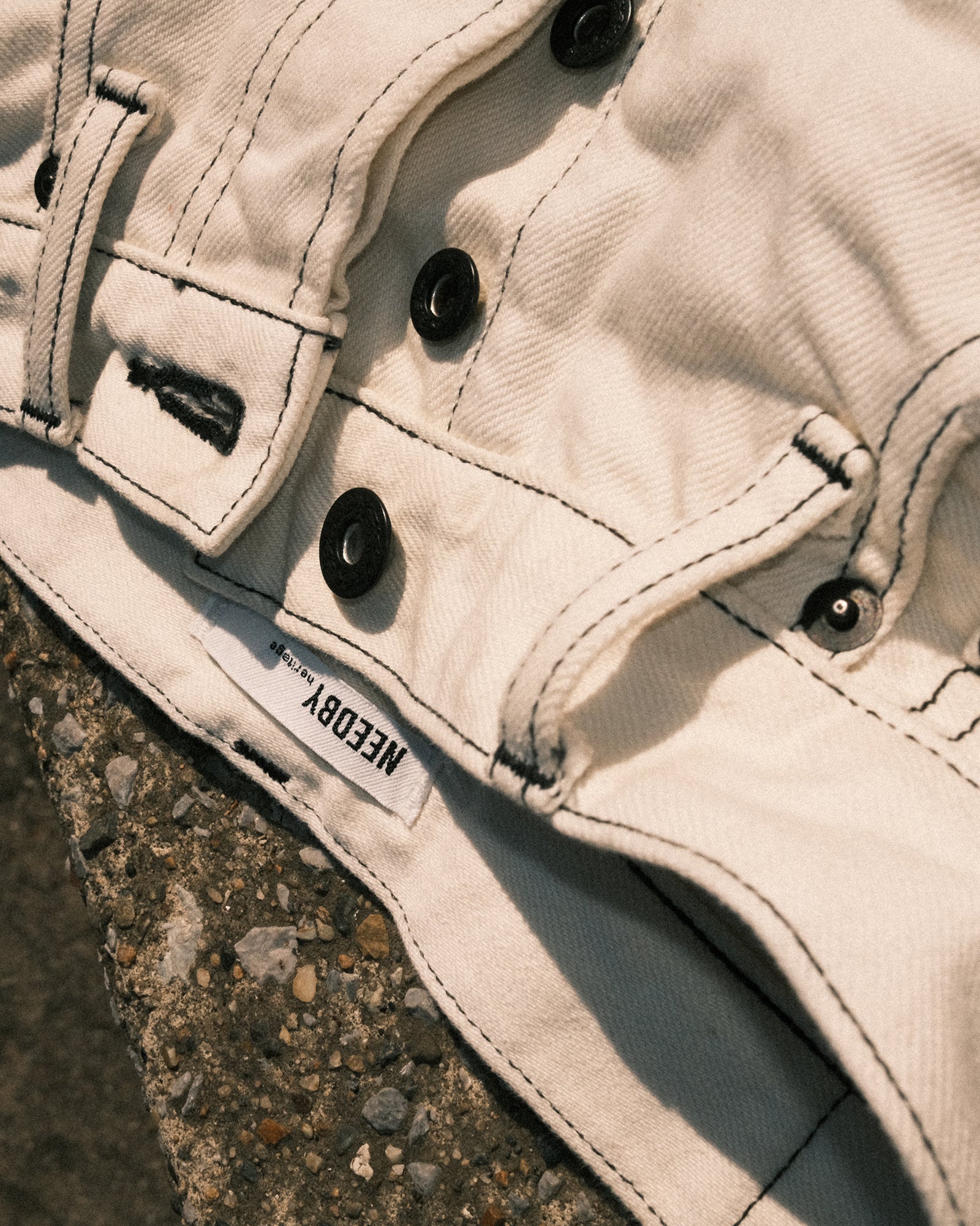 ・こだわりはブラックステッチと絶妙なホワイトウォッシュのコントラスト。ブラックのレザーパッチも映える仕上がりに