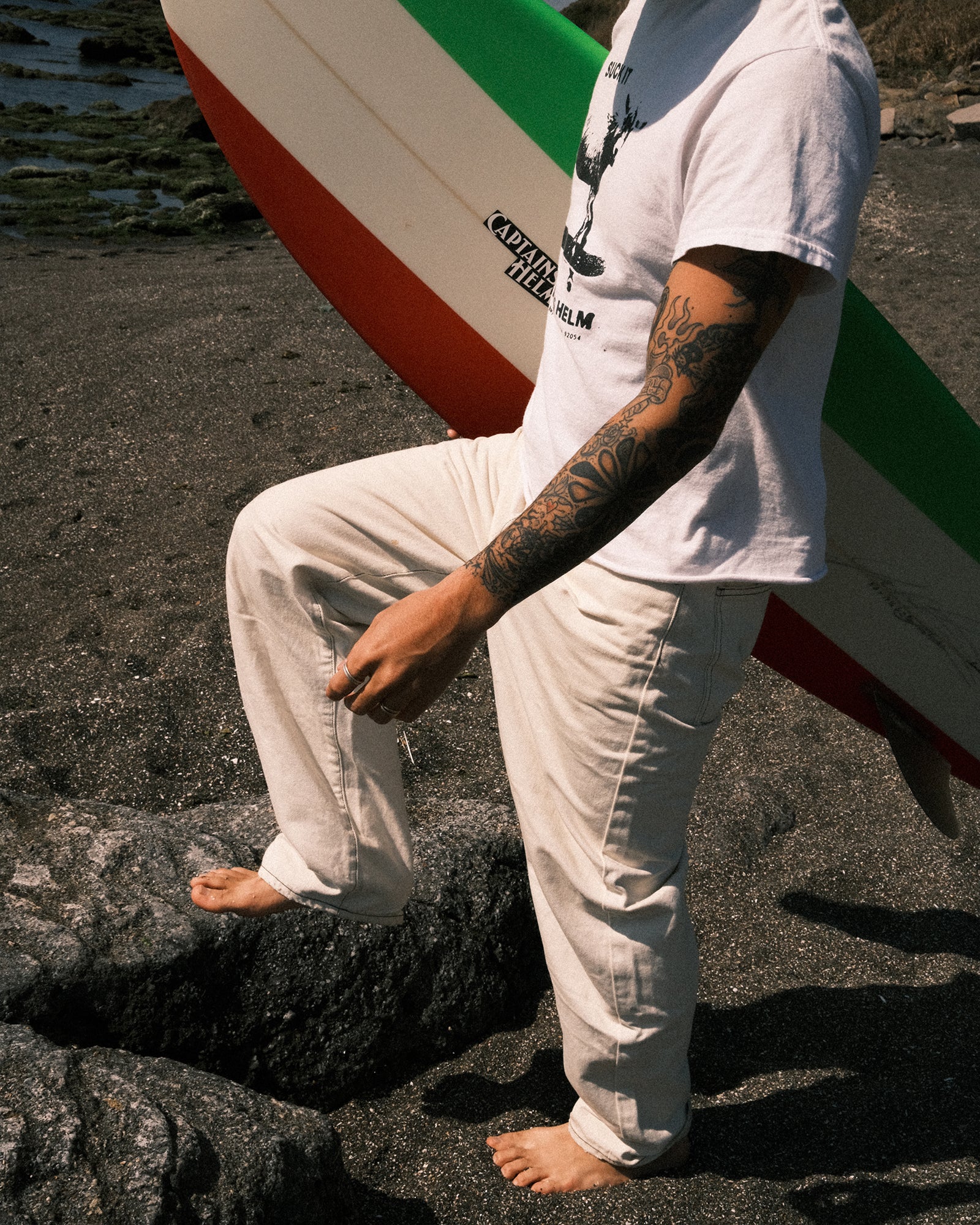 NEEDBY heritage×CAPTAINS HELM #HELM WHITE RELAX DENIM PANTS